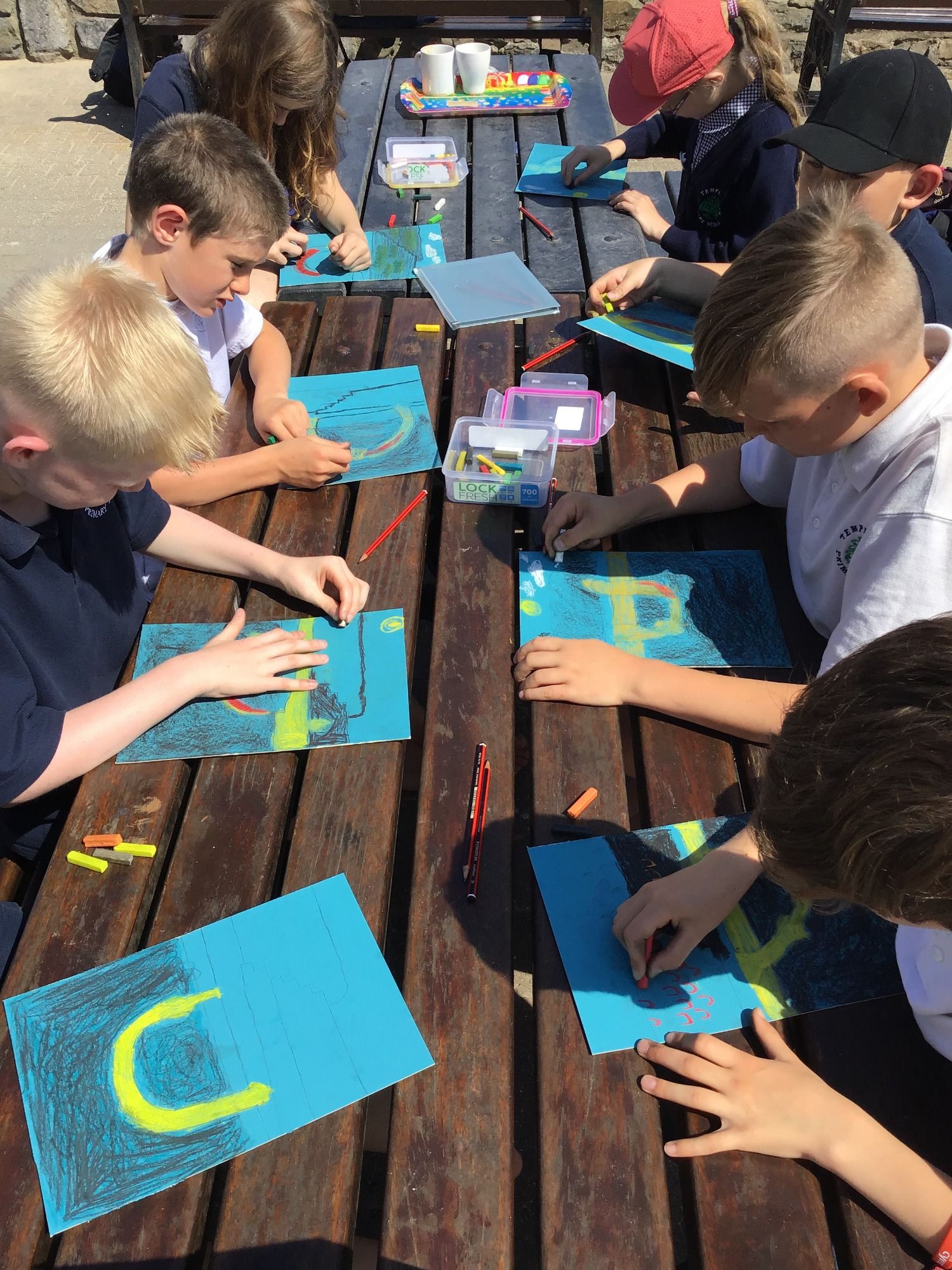 Young minds soaking up the coastal science in Tenby Harbour, head back to the studio to create a painting under artist guidance.